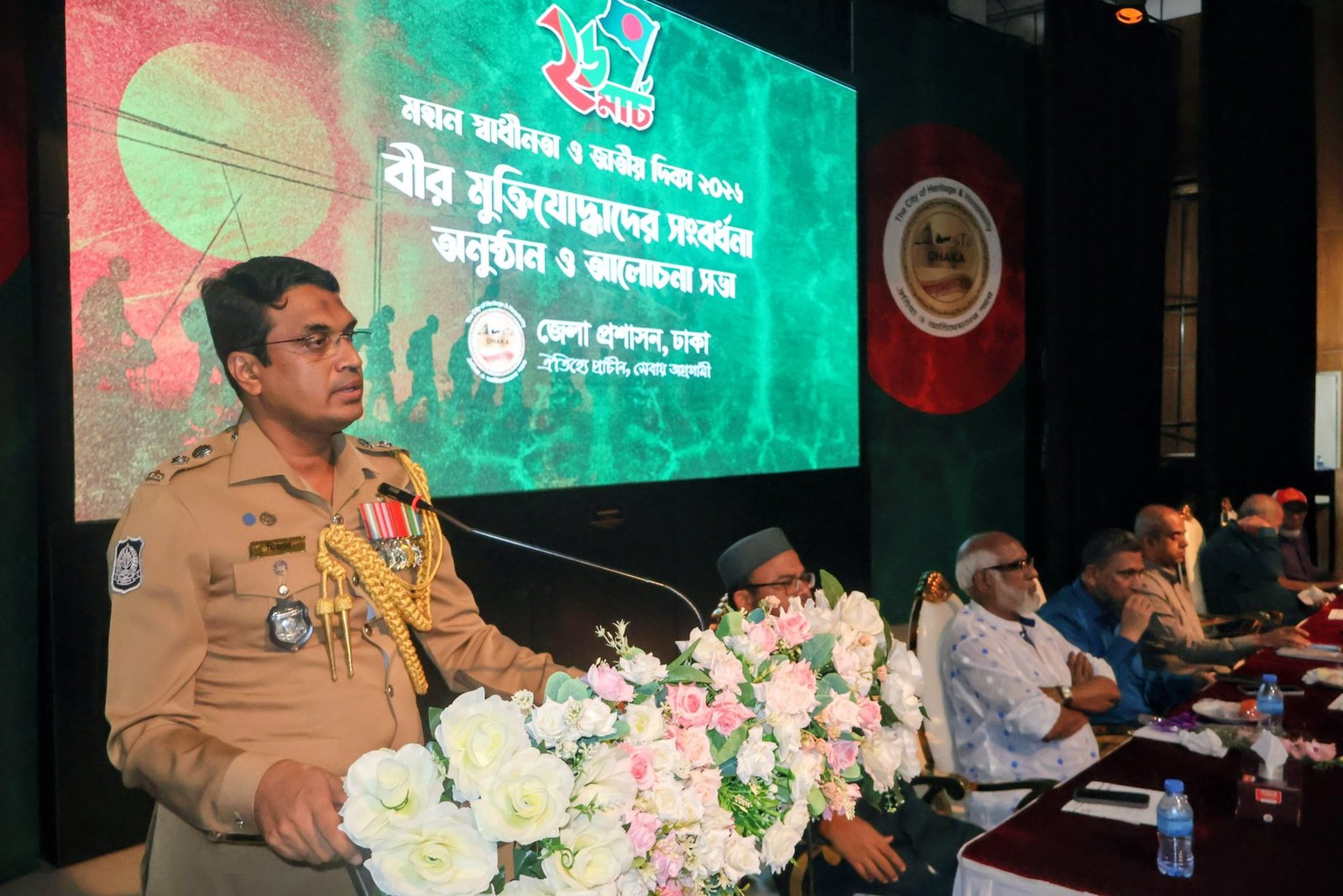 ঢাকা জেলা প্রশাসক মহোদয় উক্ত সংবর্ধনা ও আলোচনা সভায় সভাপতিত্ব করেন। সভাপতির বক্তব্যে তিনি মুক্তিযোদ্ধাদের অবদানের প্রতি গভীর কৃতজ্ঞতা প্রকাশ করেন এবং তাদের কল্যাণে সরকার গৃহীত বিভিন্ন পদক্ষেপের কথাও তুলে ধরেন। পাশাপাশি তিনি বলেন, বীর মুক্তিযোদ্ধাদের সম্মান রক্ষা করা এবং তাদের স্মৃতি নতুন প্রজন্মের কাছে পৌঁছে দেওয়া আমাদের নৈতিক দায়িত্ব।