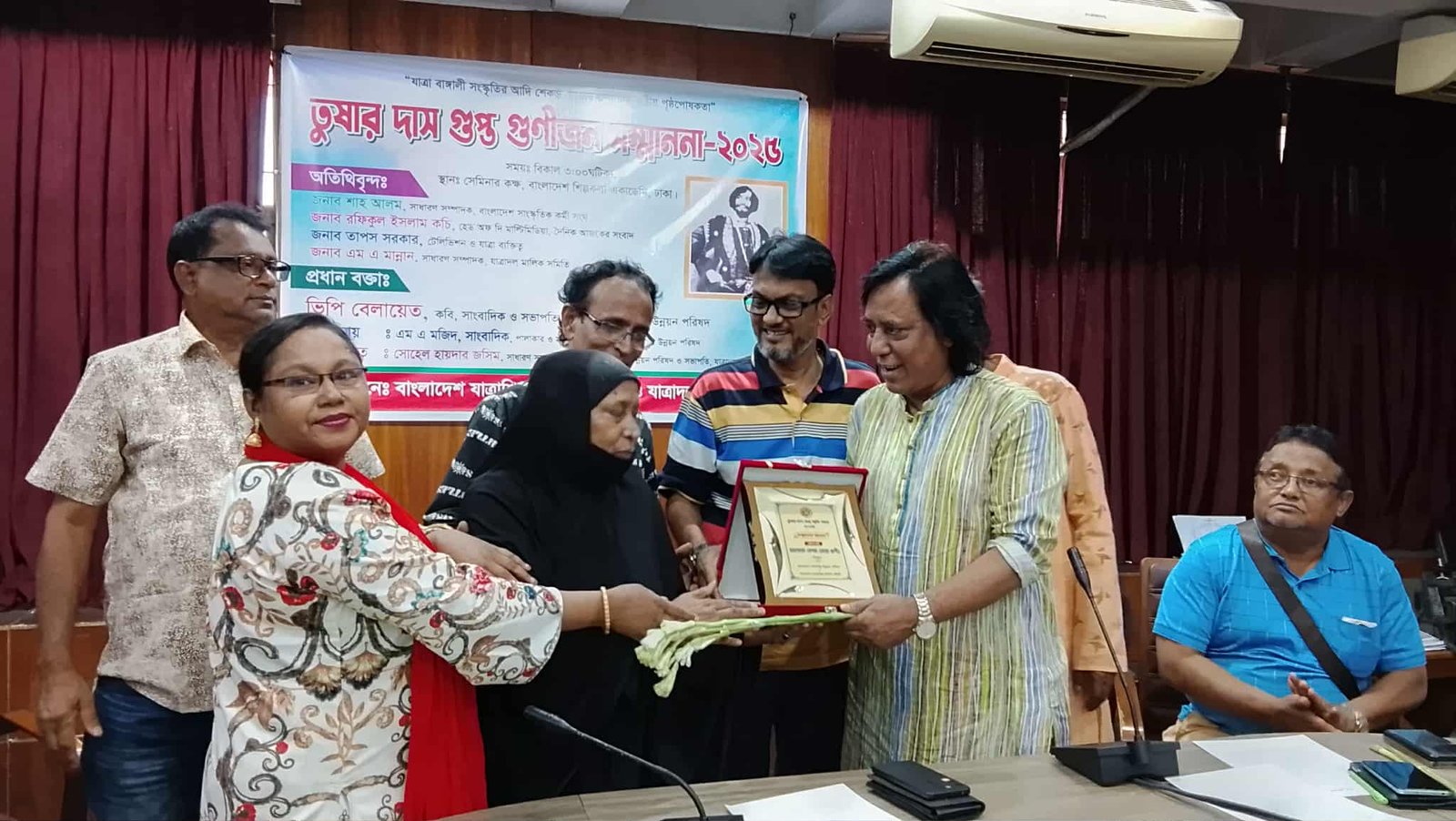 বাংলার আদি সংস্কৃতির অবিচ্ছেদ্য অংশ যাত্রাশিল্পের ঐতিহ্যকে সমুন্নত রাখতে এবং গুণী শিল্পীদের অবদানের স্বীকৃতি জানাতে ঢাকায় অনুষ্ঠিত হলো “যাত্রা বাঙালির সংস্কৃতির আদি শেকড়চা পৃষ্ঠপোষকতা- তুষার দাস গুপ্ত গুণীজন সম্মাননা ২০২৫”।