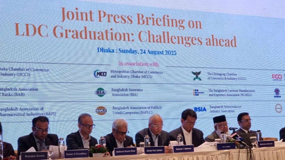 রবিবার রাজধানীর একটি হোটেলে ‘এলডিসি গ্র্যাজুয়েশন: চ্যালেঞ্জেস অ্যাহেড’ শীর্ষক এক সম্মেলনে এই আহ্বান জানানো হয়। সম্মেলনের আয়োজন করে ইন্টারন্যাশনাল চেম্বার অব কমার্স (আইসিসি) বাংলাদেশ। এতে একাত্মতা প্রকাশ করে দেশের আরও ছয়টি বাণিজ্যিক সংগঠন—এফবিসিসিআই, ডিসিসিআই, এমসিসিআই, বিজিএমইএ, বিকেএমইএ ও বিটিএমএ।