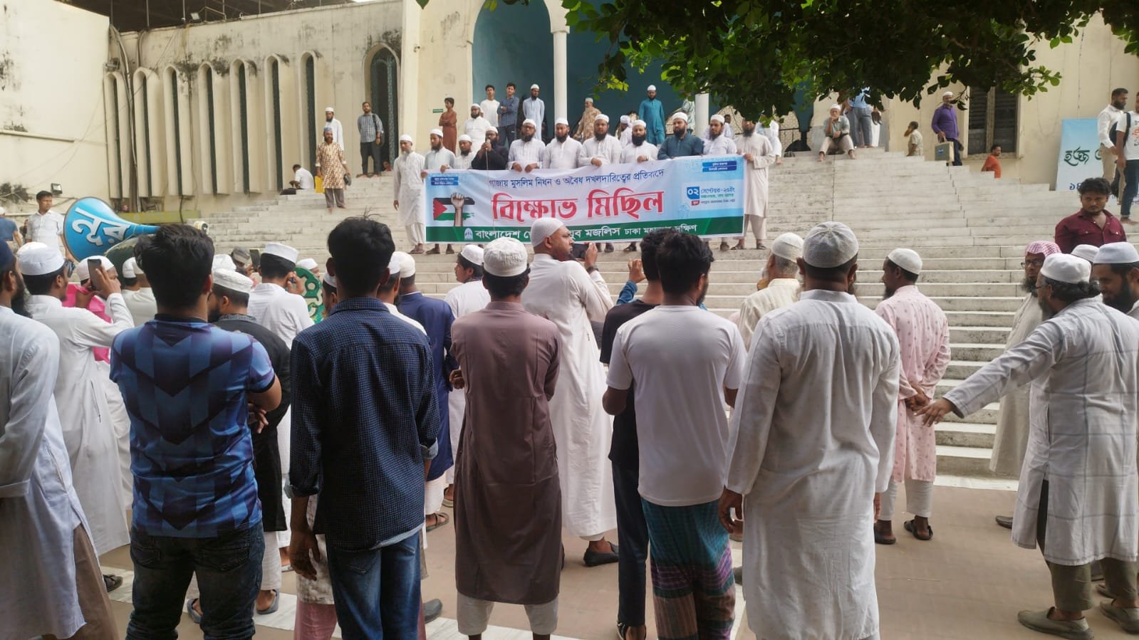 বাংলাদেশ খেলাফত যুব মজলিস ঢাকা মহানগর দক্ষিণ গাজায় চলমান মুসলিম নিধন ও অবৈধ দখলদারিত্বের প্রতিবাদে রাজধানীতে বিক্ষোভ মিছিল করেছে। আজ মঙ্গলবার বিকেলে বায়তুল মোকাররম মসজিদের উত্তর গেইটে এ বিক্ষোভ কর্মসূচি অনুষ্ঠিত হয়।