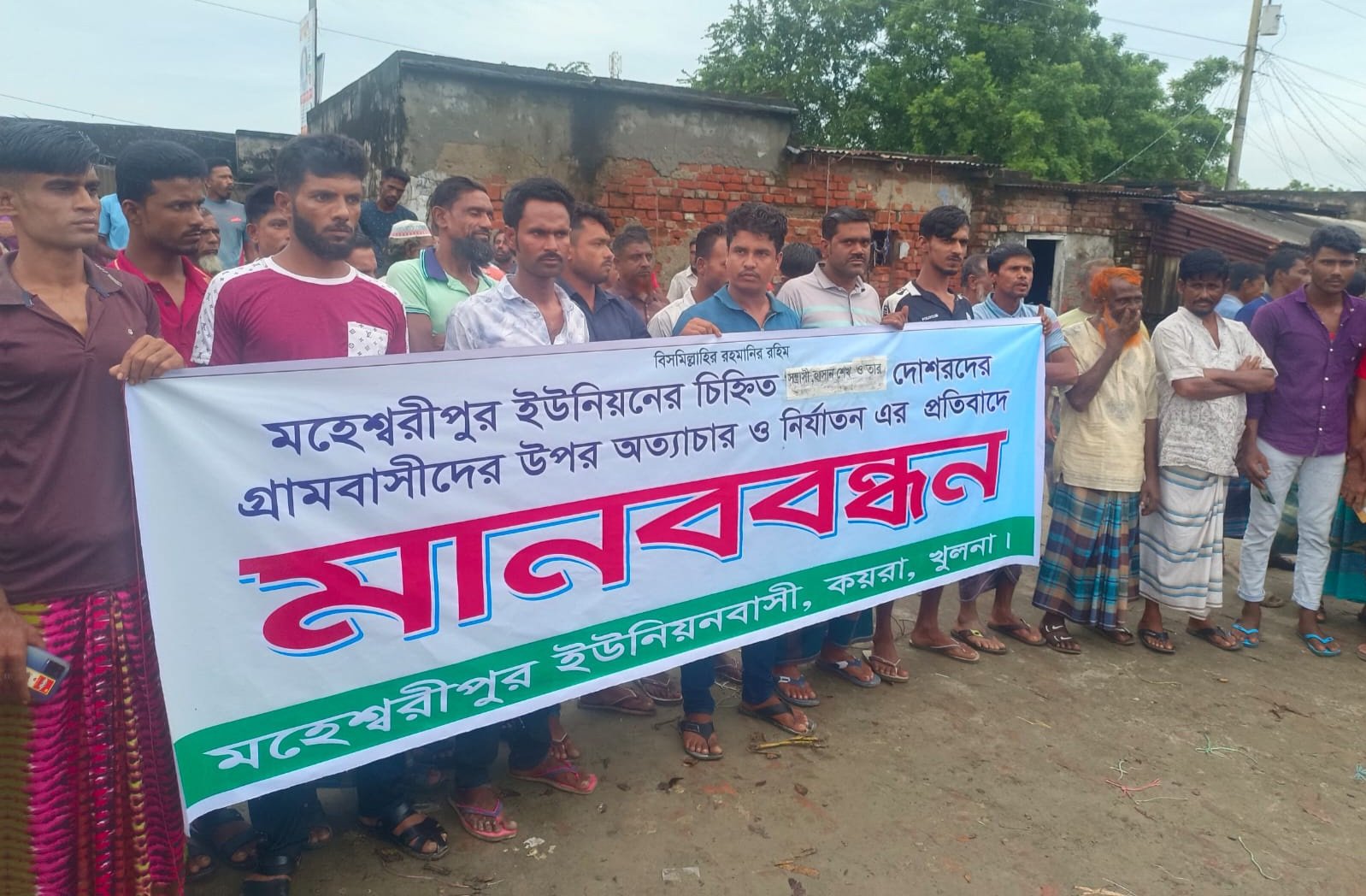 রোববার (১৪ সেপ্টেম্বর) মহেশ্বরীপুর ইউনিয়নের খোড়লকাটি বাজারে ‘মহেশ্বরীপুর ইউনিয়ন গ্রামবাসী’ ব্যানারে এই মানববন্ধন অনুষ্ঠিত হয়। এতে প্রায় দুই শতাধিক মানুষ অংশ নেন। তাদের অভিযোগ, হাসান শেখ ও তার দলের লোকজন দীর্ঘদিন ধরে বিভিন্নভাবে এলাকার মানুষকে হয়রানি করে আসছেন, যা তাদের জীবন ও জীবিকা হুমকিতে ফেলছে।