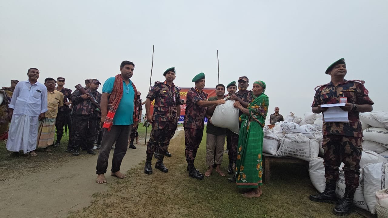 ত্রাণ হিসেবে প্রায় ১২০টি পরিবারকে চাল, ডাল, তেল, লবণ, চিনি ও অন্যান্য নিত্যপ্রয়োজনীয় সামগ্রী প্রদান করা হয়। বিজিবির পক্ষ থেকে জানানো হয়, ভবিষ্যতেও এ ধরনের দুর্যোগে ক্ষতিগ্রস্ত মানুষের পাশে দাঁড়াতে তারা বদ্ধপরিকর।