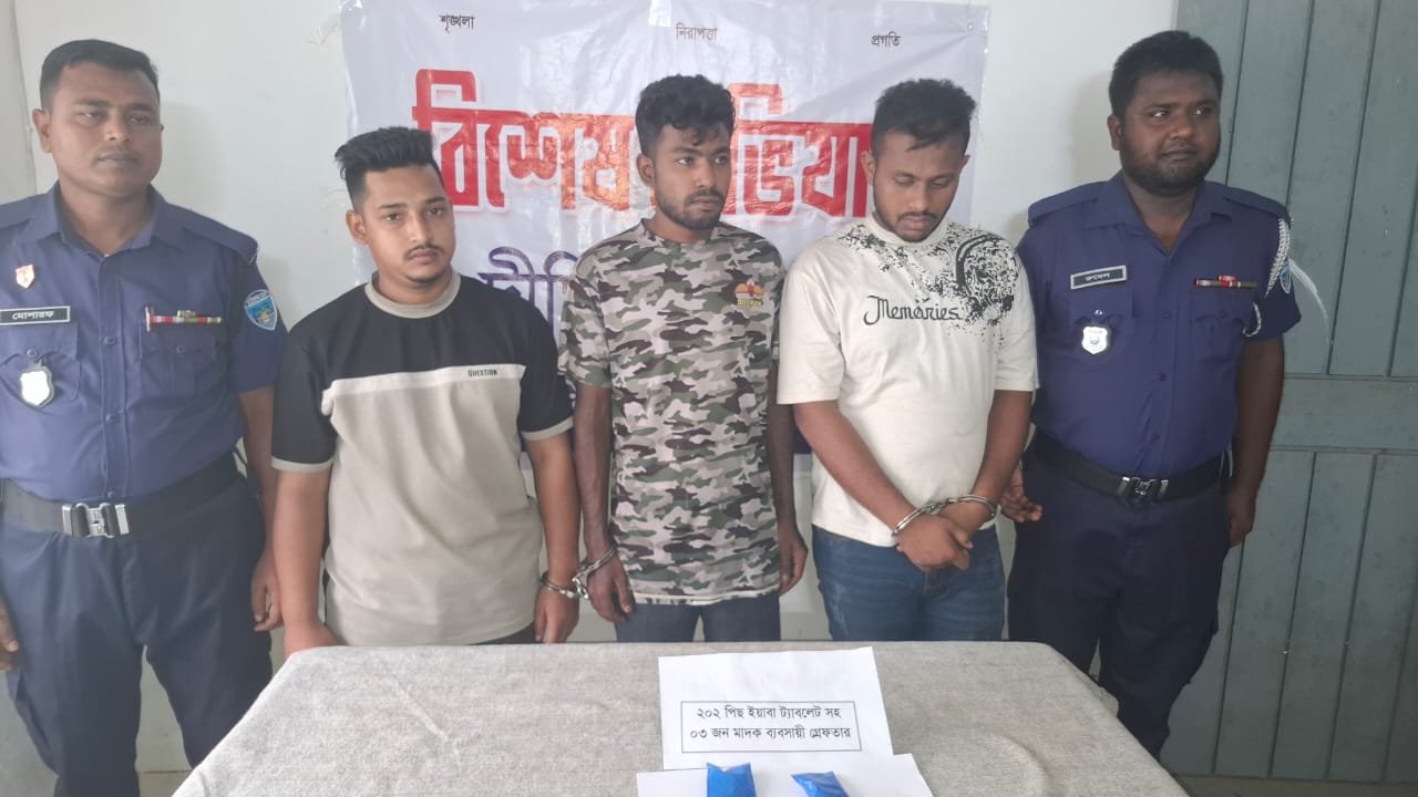 খাগড়াছড়ির দীঘিনালা থানার একটি অভিযানে ২০২ পিস ইয়াবা ট্যাবলেট সহ ৩ জনকে গ্রেফতার করা হয়েছে। আজ ভোর রাত ৪:৩০টার দিকে থানার এসআই মোঃ শফিকুল ইসলাম শফিকের নেতৃত্বে একটি বিশেষ অভিযান পরিচালনা করা হয়।