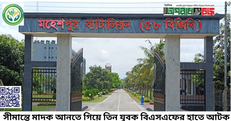 ঝিনাইদহের মহেশপুর উপজেলার পারগোপালপুর সীমান্ত দিয়ে অবৈধভাবে মাদক আনতে গিয়ে তিন বাংলাদেশি যুবক ভারতীয় সীমান্তরক্ষী বাহিনী (বিএসএফ)-এর হাতে আটক হয়েছেন।
