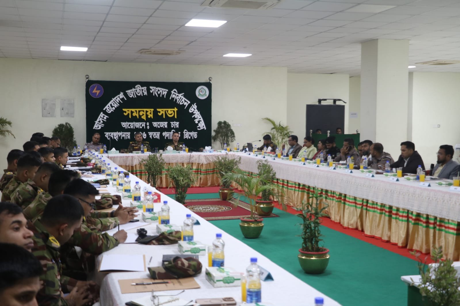 এছাড়াও নির্বাচনকালীন সময়ে সার্বিক আইনশৃঙ্খলা পরিস্থিতি স্বাভাবিক রাখা, ভোটারদের নিরাপদ ও নির্বিঘ্নে ভোটাধিকার প্রয়োগ নিশ্চিত করা এবং যেকোনো অনাকাঙ্ক্ষিত পরিস্থিতি দ্রুত ও কার্যকরভাবে মোকাবিলায় সকল বাহিনীর সমন্বিতভাবে দায়িত্ব পালনের বিষয়ে একমত পোষণ করা হয়।